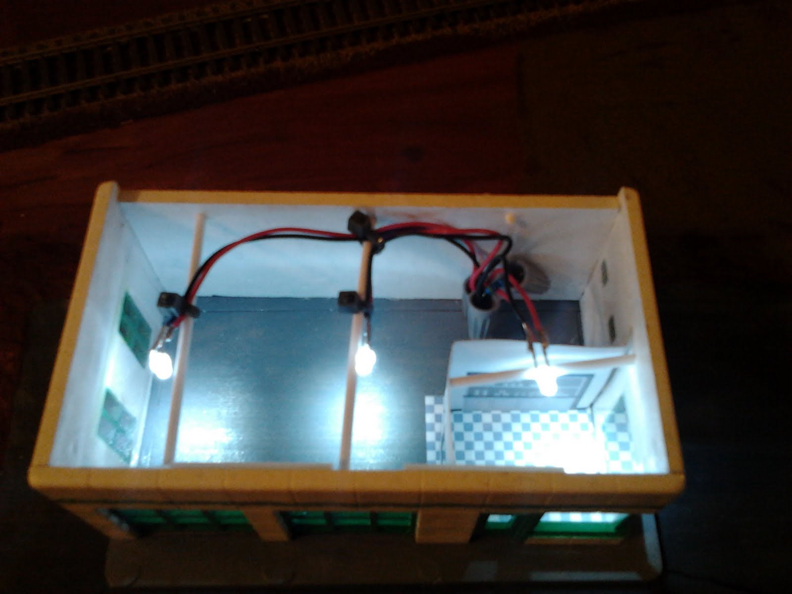 Alright. So before we go exploring this picture, I need to give you a little more background on me. Night operations have always fascinated me. I've been playing around with it for probably around a 12 years. started out in the days of DC operations. That layout had two loops, so two trains could run reasonably at the same time off of the single power pack. Towards one end, I had a single building that lit up with the most rudimentary of systems. A few years ago, I added lighting to the Flagstaff Model Railroad Clubs layout, which is almost exclusively LEDs. Here are a few shots of my handy work!
